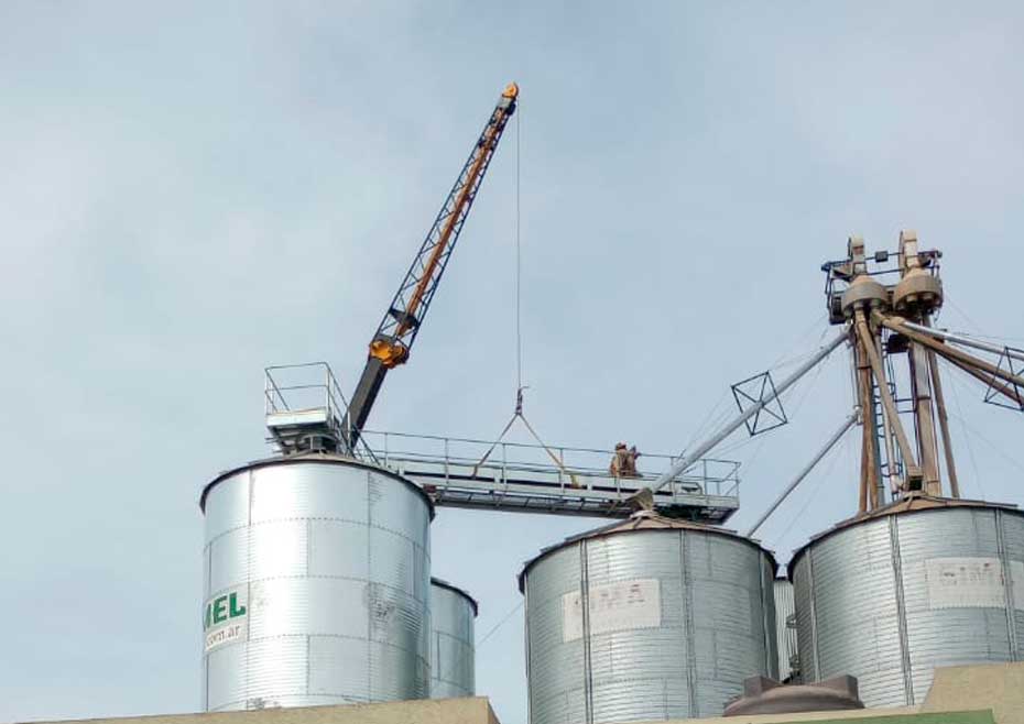 Sector "Alimentos Balanceados Lihuel (especializada en rumiantes). Montaje de dos cintas, rendimiento 30 tn/hora con pasarela de mantenimiento (material galvanizado) con una torre de apoyo. Comenzando desde la bajada del distribuidor existente. Para alimentar dos silos carga camión